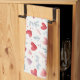 Whimsical Watercolor Hearts and Leaves Pattern Tea Towel