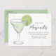 This design features a watercolor cocktail drinks margarita, QR code website online rsvp, a simple fun trendy stylish party, a cute lime slice garnish mixed, a modern calligraphy script font text, a whimsical calligraphy font style, a bar adults drinking alcohol barware, a margarita Margherita glass cocktails, a budget-friendly postcard template, a retro web address URL
