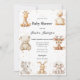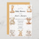This invitation features a delightful baby shower design with adorable animal illustrations, such as a giraffe, bear, rabbit, and more, arranged charmingly around the text. The animals bring a playful and heartwarming vibe, making it perfect for celebrating this joyful occasion. With its soft colour palette and whimsical illustrations, the design radiates warmth and charm. 🌟🐾