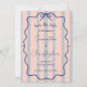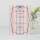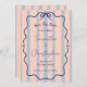 Whimsical and colourful wedding save the date featuring a sweet harmony of blush, dusty blue stripes, a wavy doodle frame, and a blue bow. This simple yet romantic combination of its retro backdrop and elegant script calligraphy makes this invitation truly unique and fun.