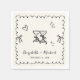 Retro-inspired light cream wedding napkins for your engagement party, rehearsal dinner, reception, and other wedding events featuring a trendy wavy frame adorned with coquette bows, whimsical hand drawn illustrations of a heart, stars and wine glasses, and the names of the bride and groom in a playful handwritten script.