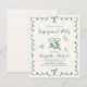 Set the tone for a joyful celebration with this charming light cream engagement party invitation that features a green wavy frame, hand-drawn coquette bows, and playful green script lettering. The toasting wine glasses add a fun, festive touch, creating the perfect blend of romantic and whimsical style. NOTE: This budget-friendly paper is similar in weight to photo paper -- a larger and thicker 5x7 traditional card stock version is also available (message us for the link).