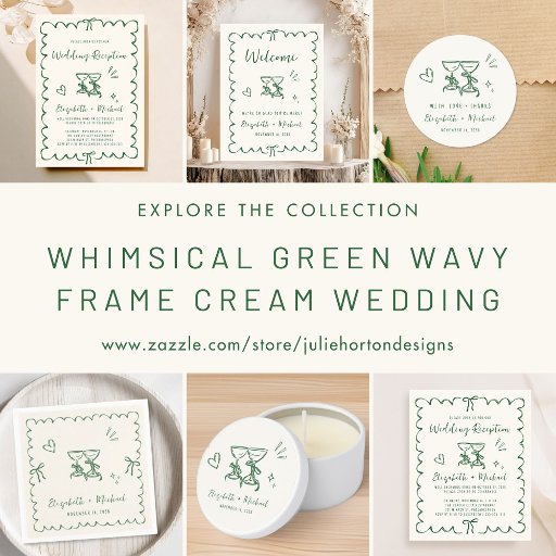 Whimsical Green Wavy Frame Cream Wedding ReceptionDesigned by Julie Horton