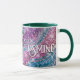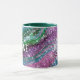 Whimsical wavy pink green Glitter monogram Coffee mug. A girly and trendy glittery modern mug. It makes the perfect sweet 16 birthday, wedding, bridal shower, anniversary, baby shower or bachelorette party gift for someone that loves glam luxury and chic styles. Whether for valentines day, Christmas or any occasion in general this cute coffee mug will make a great gift idea for any girl or woman who loves modern sparkly elegance. PLEASE NOTE: These are flat printed graphics - no real glitter, jewels or raised parts.