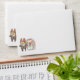 Whimsical wedding envelopes with name on the front (can remove as desired) and return address details on the reverse. Cute handdrawn style doodle art graphics of dogs bride and groom, roses and more lining the envelope and front and back. This is part of the Wedding Timeline collection.