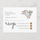 Whimsical wedding rsvp card with cute dove with an envelope and on the reverse an animal bride and groom doodles. For matching items and custom edits contact Designer LeahG