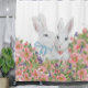 Whimsical White Bunny Rabbits, Pink Flowers Pastel Shower Curtain
