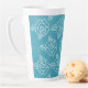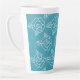 Whimsical White Roses Hand-Drawn Floral Turquoise Latte Mug