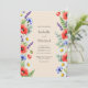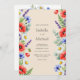 Beautiful wedding invitation card background with a soft beige backdrop and a watercolor wildflower border featuring poppies, cornflowers, daisies and delicate foliage. Perfect for print on demand wedding stationery.