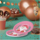 Some cute pink paper plates for your child's friendly Holiday party featuring a winking Santa Claus .