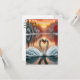 The card features a breathtaking scene of two elegant swans forming a heart shape with their necks on a serene, calm lake. They gracefully glide through the water. In the background, majestic mountains rise against a sky painted in warm hues of golden sunset, hinting at a magical dusk. Autumn-coloured trees frame the scene, while soft, glistening snow blankets the landscape, evoking a warm yet wintery sensation. The enchanting atmosphere invites you to embrace the warmth of love and peace during the festive season.*
