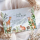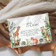 Encourage guests to build a special library for the mother-to-be with this Whimsical Woodland Animals Books for Baby Shower Enclosure Card. Featuring an enchanting woodland theme with adorable cute animals, including a giraffe, fox, and bunny, surrounded by watercolor eucalyptus greenery and wild tropical leaves, this elegant and modern boho design perfectly complements your baby shower celebration.