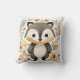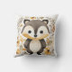 This image displays a charming square decorative pillow, featuring an adorable cartoon-style badger with a friendly and inviting expression. The badger is illustrated with a rich blend of greys, whites, and blacks, its large eyes and sweet smile exuding warmth and friendliness. It is set against a backdrop of soft neutral tones, adorned with a delicate pattern of autumnal leaves, acorns, and subtle floral accents in shades of beige, brown, and soft yellow. The pillow design captures the essence of woodland enchantment, making it an ideal accessory for a child's room or any space needing a touch of playful comfort.