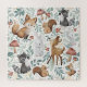 Adorable forest animals like foxes, raccoons, bunnies, squirrels, and a playful deer surrounded by soft greenery and mushrooms