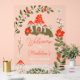 Welcome your guests to a magical woodland celebration with our charming mushroom-themed baby shower welcome transparent sign. Featuring hand-painted illustrations of vibrant red and white mushrooms, delicate flowers, and lush greenery, this enchanting design is set against a deep forest green background. At the centre, a whimsical mushroom house adds a fairy-tale touch, while the personalised welcome message warmly greets your guests. This delightful sign is perfect for setting the tone for a nature-inspired, whimsical baby shower. Ideal for woodland-themed parties, it adds a beautiful and inviting element to your special day.