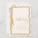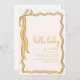 Celebrate a sweet new arrival with this charming baby shower invitation template featuring a warm golden-yellow ribbon border and playful, hand-lettered "hello baby" headline. The soft cream background and whimsical frame create a cosy, gender-neutral design perfect for any baby celebration. Easily personalise the details including name, date, location, RSVP, and registry info. Ideal for both printed and digital invitations, this template adds a joyful and stylish touch to your baby shower planning.