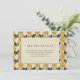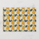 This wedding enclosure card features a charming design with a repeating pattern of stylized pears and leaves in warm yellow-orange hues against a light beige background. The central cream-colored box, framed by a double border, contains elegant serif typography that guides guests to find more details online. The playful yet sophisticated layout combines organic shapes and clean lines, creating a welcoming and cheerful atmosphere perfect for celebrating your special day.