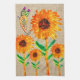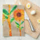 Whimsical Yellow Sunflowers and Bird Kitchen Towel