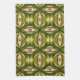 Whimsigoth Pink Eye Green Botanical Maximalist Art Tea Towel