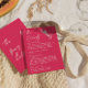 Simple and stylish retro whimsical wedding guest info details. With deep pink raspberry background and white hand written text layout with whimsical wordings and vintage hand drawn hand holding a wine glass on the front and candle on the back. All the info are customizable as website, transportation, accommodation . Grab it along with other products from this classy hand made retro wedding suite.
