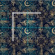Trendy, magical gold dreamcatcher mandala floral pattern, featuring a collection of tribal feathers, mandala flowers, geometric flowers, the moon, the sun and the stars, circles, dots, squares, triangles, chevron zigzag, geometric shapes, a mandala with a protection eye, made with yellow gold and silver dots shining glitter sparkles mystical image, over a midnight blue, dark blue gradient starry glow background. This trendy, mystic, tribal, fashionable, fantasy illustration, bohemian girly design, is perfect for everyday wear, home decor, celebrations and special days theme decorations.