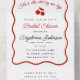Celebrate in style with this whimsical "She’s the Cherry on Top" all-in-one bridal shower invitation design. Featuring vibrant red script, a hand-drawn wavy border, and a sweet bow at the top, the design is centred with a charming pair of cherries—capturing a playful, retro-inspired vibe. Set on a clean white background, the layout includes customisable event details, RSVP information, and a scannable QR code at the bottom for easy digital responses. Perfect for modern brides who love a fun, coordinated look with a touch of vintage flair.