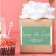 Whimsy Save the Date Stickers in green and white with a simple and fun script typography design. These trendy save the date stickers are easy to customise with your wedding details. For more customisation options, click on the Customise It button.
