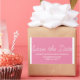 Whimsy Save the Date Stickers in pink and white with a simple and fun script typography design. These trendy save the date stickers are easy to customise with your wedding details. For more customisation options, click on the Customise It button.