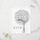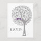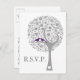 a grey whimsy love tree with two purple love birds on tree branch, mod and trendy wedding rsvp cards. Matching products also available.
