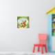 This poster features a whimsical watercolor print of a teddy bear on a swing.
