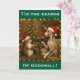 If you own or love a Whippet or are a dog lover I'm sure you'll know the penchant that Whippets have for squirrels! Our Whippet goes from zero to 100 if he sees or gets wind of one. Here they are toasting their Christmas truce in this Christmas holiday greetings card. The Whippet dog and the squirrel are both sitting in armchairs opposite one another with a glass of red wine which they're making a toast to one another with. A Christmas tree is behind them with twinkling light.