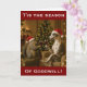 If you own or love a Whippet or are a dog lover I'm sure you'll know the penchant that Whippets have for squirrels! Our Whippet goes from zero to 100 if he sees or gets wind of one. Here they are toasting their Christmas truce in this Christmas holiday greetings card. The Whippet dog and the squirrel are both sitting in armchairs opposite one another with a glass of red wine which they're making a toast to one another with. A Christmas tree is behind them with twinkling light.