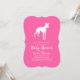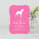 Include the big brother or sister fur baby in the celebration with this adorable Whippet baby shower design! Perfect for a puppy lover with a baby on the way. The Whippet is next to an adorable vintage carriage. The pink makes it perfect for a baby girl on the way!