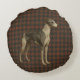 Whippet round cushion. Whippet on tweed/tartan Round Cushion