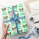 Whippet Silhouette White Christmas Dog & Green Bow Wrapping Paper