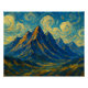This piece reimagines the grandeur of a mountain range through the vivid and emotional lens of Vincent van Gogh’s style. The sharp, jagged peaks rise dramatically into the sky, wrapped in swirling clouds that echo the restless energy of the natural world. The motion-filled brushwork captures both the solidity of the mountains and the fleeting, dreamlike atmosphere of mist and wind.
