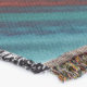 A quality printed throw has its advantages. This is a much finer weave throw than its loopier cousins, and though lighter, it is worth the investment for custom room accessorizing. The back is much prettier than the typical brown, and the fringe on the long sides very vivid, the selvage nicely done. Before photographing, I washed the throw in cold water, delicate, with a thicker woven throw the same size. On tumble dry low, this throw was dry in half the time as the other. This is a very practical quality if you use throws for furniture covers or to wrap up in frequently. The sleekness of the fabric makes it a great layer for accenting or protecting without the feeling of sitting on too much stuff. Perfect for napping or when you feel a light chill coming on. The color printing is beautiful and on this fabric, matched the design and color of my Photoshop image. This is an advantage for blending room fabrics and colors. The fringe on the short sides prints the colors from the design image and therefore varies from the side fringe. I streaked a white fractal line through the plaid pattern to give the illusion of weaving. This printed as crisp as an illusory thread, and put some white in the short side fringe, showing another advantage of print vs loomed- for artistic purposes, line lines, detail, and color integrity can be planned and preserved. My loomed throws have color limitations and more of a needlepoint texture. Print throws reproduce an exact image. The throw felt a little stiff straight out of the package, but this went away in the first delicate wash. Of course I searched the wash water for ink or bleeding and there was none.
