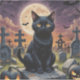 A sleek black cat graces a ghostly graveyard on Halloween night, a symbol of mystery and magic. With an enchanting backdrop of crumbling tombstones and a bright moon, this artwork captures the allure of the supernatural and the thrill of the season. Perfect for those who revel in Halloween’s eerie and enchanting atmosphere!