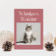 Cute and funny Christmas holiday photo template card for cat owners featuring a typography text at the top that says "Whiskers and Wonder" with a photo of your kitty. You can add another picture on the back with a message. The background is pink.