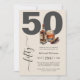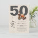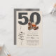 A masculine 50th birthday party invitation to prepare your guests for a memorable party, this custom design features bold lettering with the age 50 along with handwritten script spelling out fifty along the side. A whiskey bottle, poured glass, and cigar graphic add to the festive party mood of this unique invitation. Personalise the text template with your info. This invitation may be ordered as both printed and paperless digital download for your convenience.