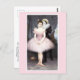 A fine art postcard featuring, A Whisper of Love (1894) by Pierre Carrier-Belleuse (1851-1932). He was a French artist known for his portrayals of ballerinas. This romantic pastel depicts a ballerina in a pink tutu with her lover.