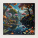 Immerse yourself in the beauty of an idyllic fantasy landscape jigsaw puzzle, where nature comes alive in vibrant hues and serene reflections. This captivating scene features a tranquil waterway surrounded by blooming trees in shades of pink, orange, and green. The crystal-clear water mirrors the lush environment, dotted with lily pads, glowing blossoms, and sparkling elements that evoke a sense of magic. Majestic, misty mountains rise in the distance, framed by a clear blue sky.