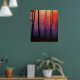 This design features a forest of dark trees with the colours of the sunrise or sunset peering through the breaks. Featuring colours of purple, pink, orange and gold, this design is titled 'Whispering Woods'. Feel free to customise and personalise to meet your needs.