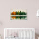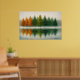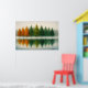 A tranquil forest scene unfolds in gradient harmony—fiery orange trees on the left surrender to soft yellow-greens, then deepen into solemn evergreens on the right. Their mirrored reflections ripple gently across a still lake, doubling the emotional weight of the composition. Snow drifts quietly through a misted backdrop, softening the edges of time and space. This piece captures the hush between autumn’s last breath and winter’s first whisper—a moment of transition, memory, and quiet anticipation.