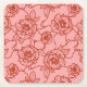 Whispers of Rose, Elegant Line Art Floral Pattern Square Paper Coaster