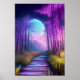 Follow the enchanting wooden path as it weaves through the bamboo forest, illuminated by the soft, ethereal glow of a purple moonlit sky. Nature's tranquillity harmonises with the mystical ambiance, creating a surreal experience. Lose yourself in this captivating digital art that transports you to a dreamlike realm of wonder and serenity.