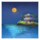A peaceful moonlight landscape unfolds in this lovely beach night seascape painting.On the porch, a man sits, lost in contemplation. It captures the moment of profound serenity and introspection, inviting the onlookers to share in the stillness of the night.