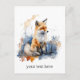 Send a personalised message with a postcard as beautiful as your thoughts. This card features the serene watercolor fox design, perfect for a note to a friend, a quick hello from vacation, or a unique party invitation. The vibrant blue and orange hues are sure to stand out in the mail. Write your own message on the back, or add a line of custom text on the front like Greetings from the Woods, or Thinking of You.