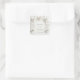 This elegant quiet luxury wedding sticker features white sculptured roses on a white background, bride and groom name in an elegant modern font and handwritten script.