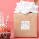 This elegant quiet luxury wedding sticker features white sculptured roses on a white background, bride and groom name in an elegant modern font and handwritten script.
